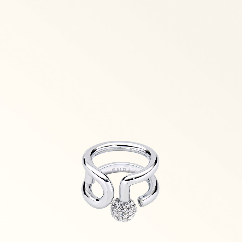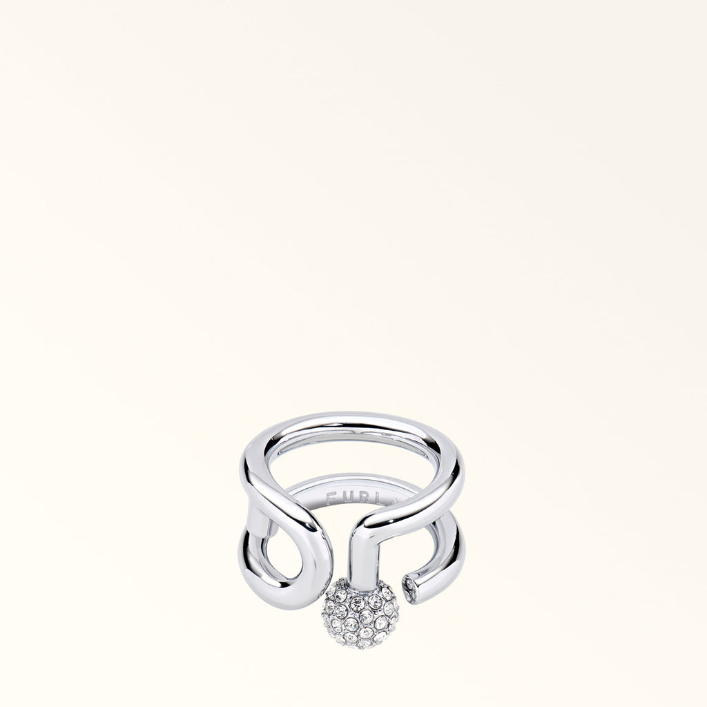 A modern masterpiece with a cool edge, this bold silver-tone ring is adorned with a crystal pavé sphere for a touch of brilliance. The iconic Furla arch logo completes the design, making it an unforgettable accent piece.