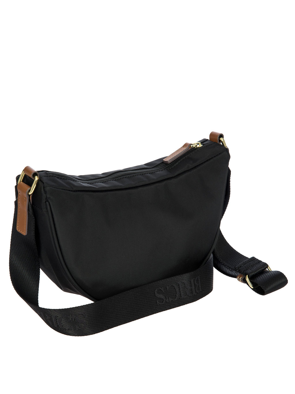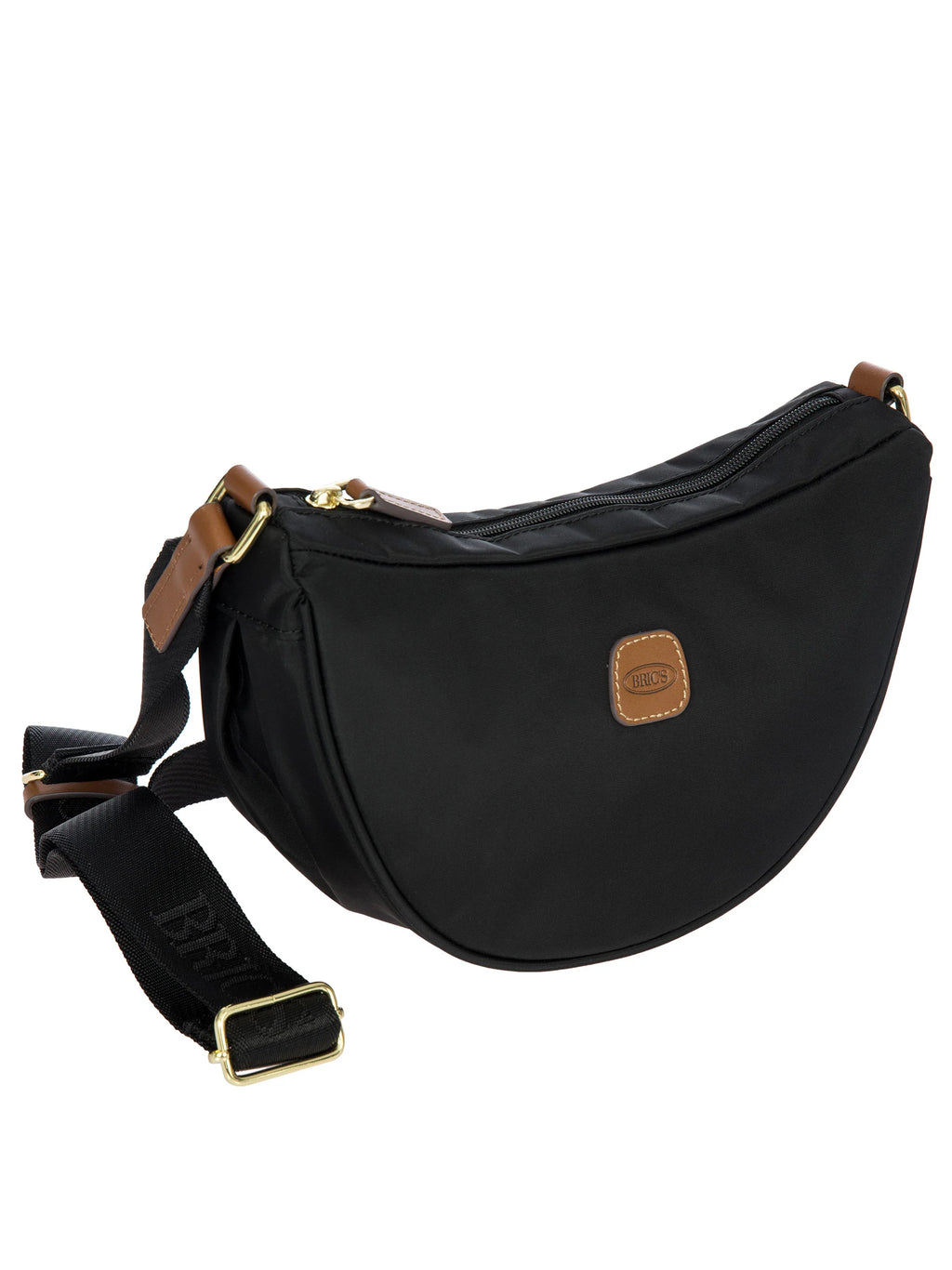 The small Halfmoon bag from the X-Collection is made of soft, lightweight and durable recycled fabric, water-resistant. Thanks to the adjustable shoulder strap, it can be comfortably carried either on the shoulder or across the body. The crescent shape is very spacious, making it ideal for everyday use. Featuring an internal zipped pocket, it is ideal for organising your belongings. The bag is finished with genuine leather details and fabric lining. Embellished with the iconic Bric's logo in leather on the outside.