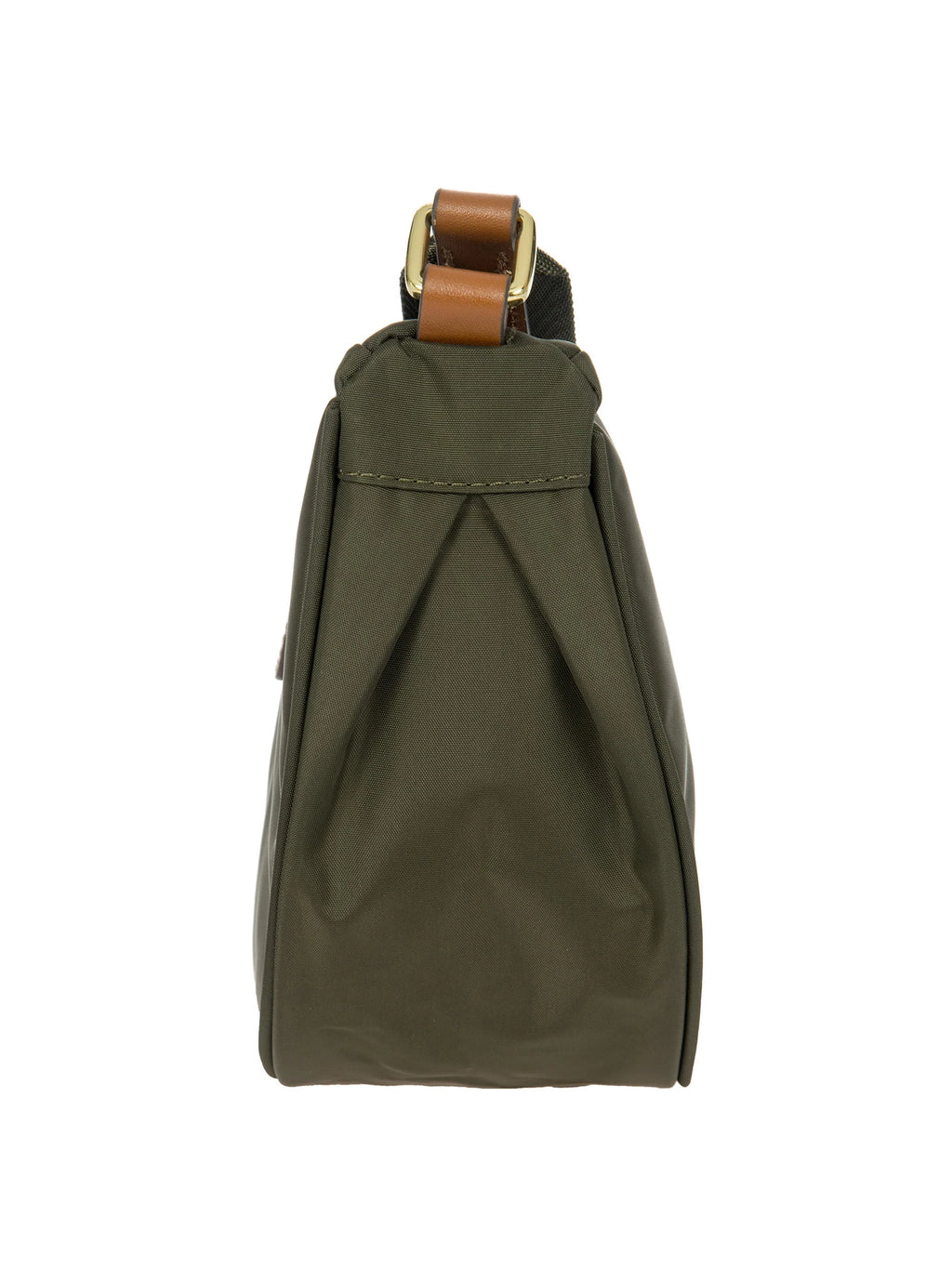 The small Halfmoon bag from the X-Collection is made of soft, lightweight and durable recycled fabric, water-resistant. Thanks to the adjustable shoulder strap, it can be comfortably carried either on the shoulder or across the body. The crescent shape is very spacious, making it ideal for everyday use. Featuring an internal zipped pocket, it is ideal for organising your belongings. The bag is finished with genuine leather details and fabric lining. Embellished with the iconic Bric's logo in leather on the outside.