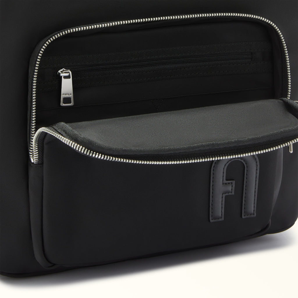 Atlante medium backpack combines the utilitarian-chic with its functional design. This practical style is crafted from nylon fabric. Frontal zipped pocket and the dual logo handles complete with uniqueness the backpack.