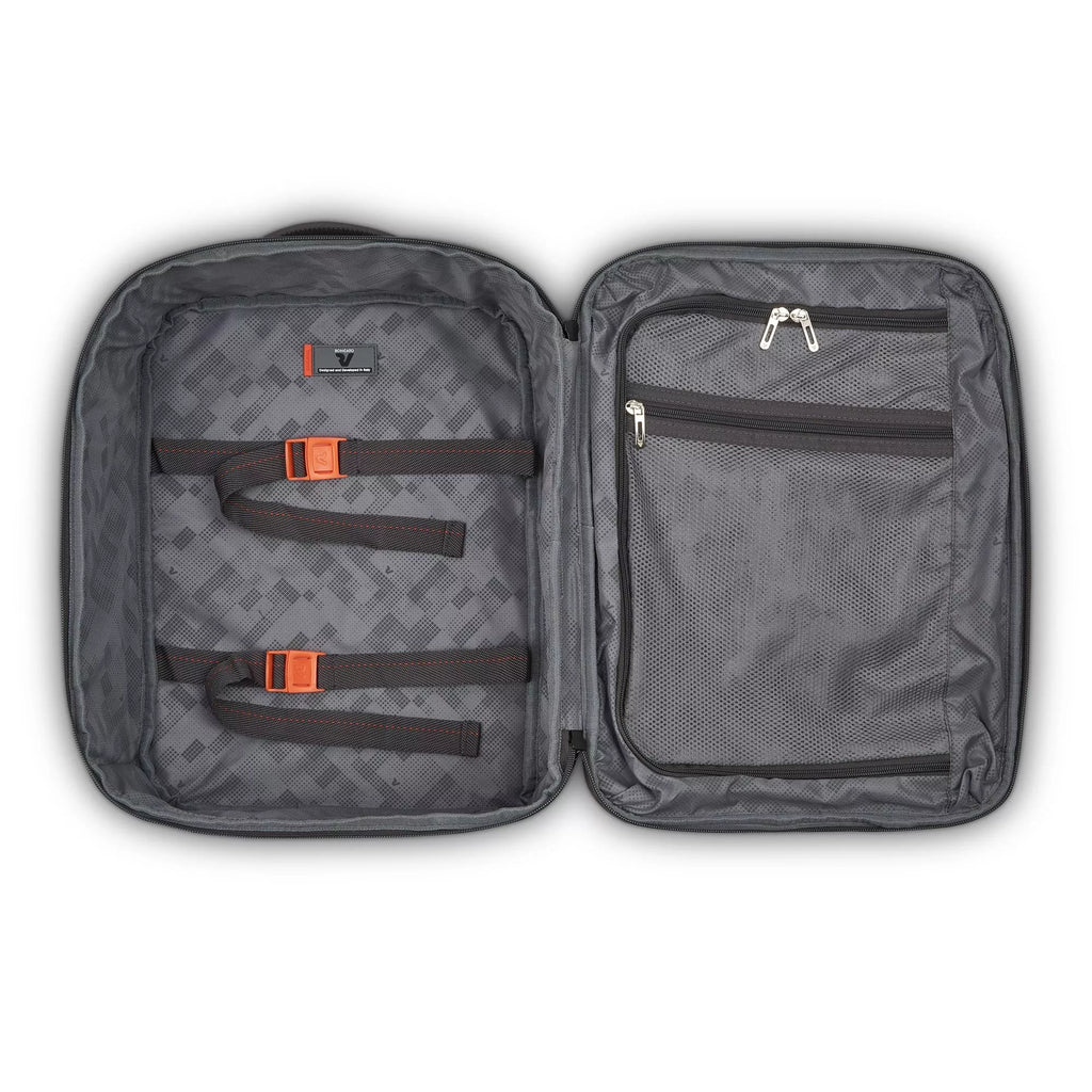 - Internal organization with webbing to secure clothes and a zipper divider.