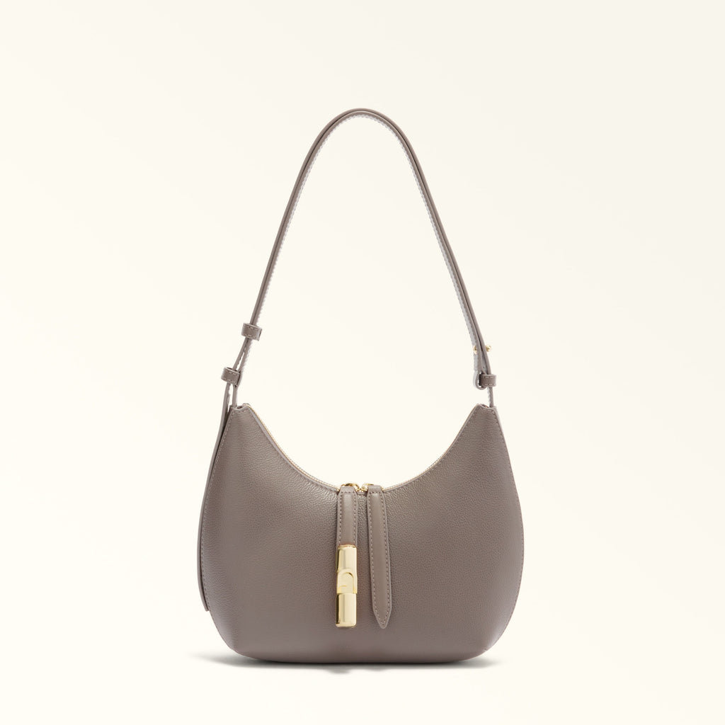 „Furla Goccia“ mažą pečių krepšį apibūdina švarios linijos, jo forma daro maišą madingą, tačiau tuo pat metu praktiška. Pagaminta iš naktinės blauzdos odos ir „Sidney“ blauzdos odos su viršutiniu užtrauktuko uždarymu ir cilindrine „Furla Lock“ aparatūra.