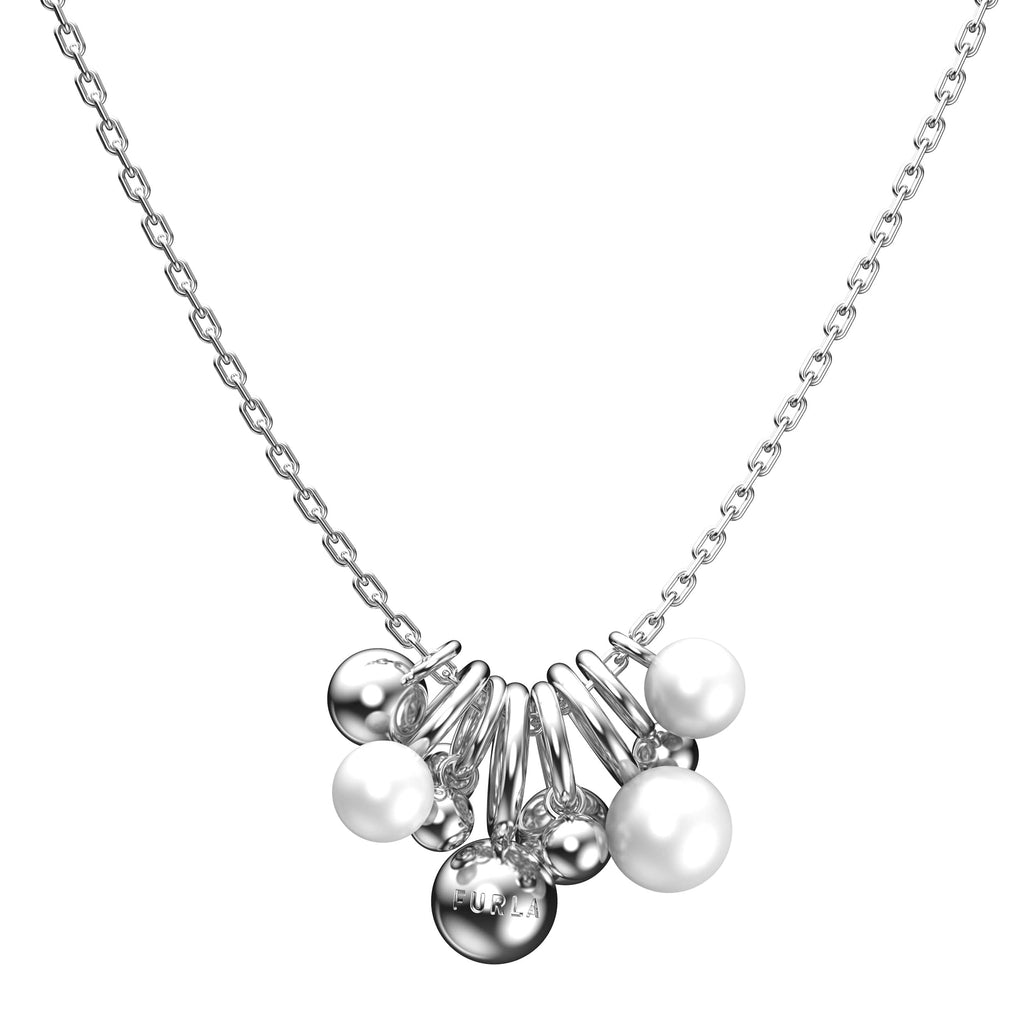Subtili sidabro tono grandinė, puošta daugybe sferos pakabučių, maišant nerūdijančio plieno ir imitacijos perlus, kad būtų galima nesenstanti, tačiau šiuolaikiška išvaizda.