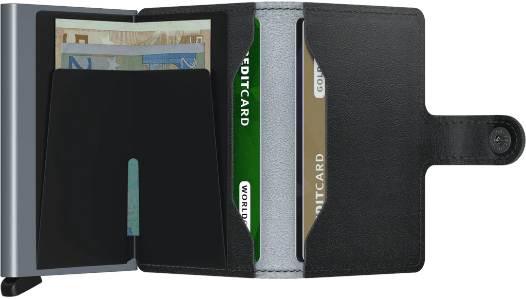 Маленький по размеру и удивительно большую по емкости хранения, мини -вальки сочетает в себе лучшее из обоих миров. Внешний вид содержит банкноты, квитанцию и карты, в то время как алюминиевый защитный защитник позволяет вам выдвигать карты одним простым движением и защищает их от изгиба, разрыва и нежелательной беспроводной связи.