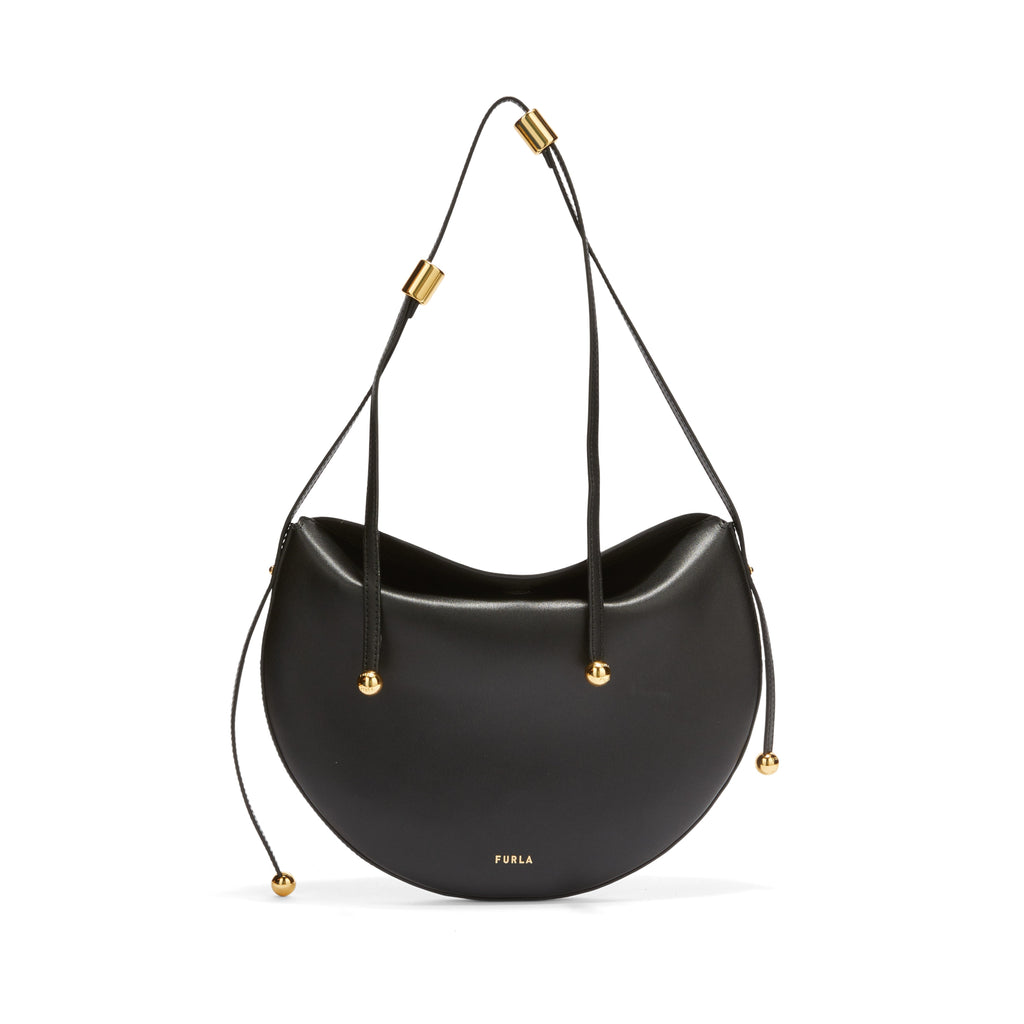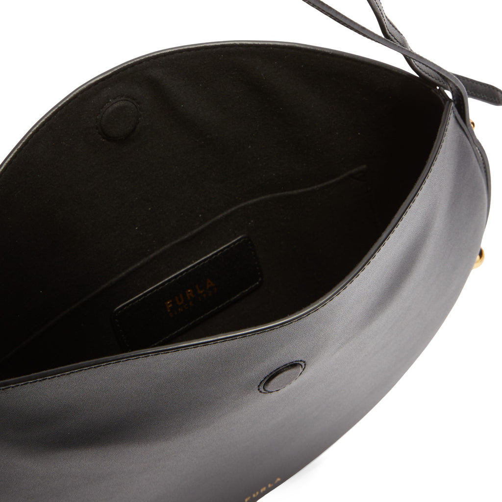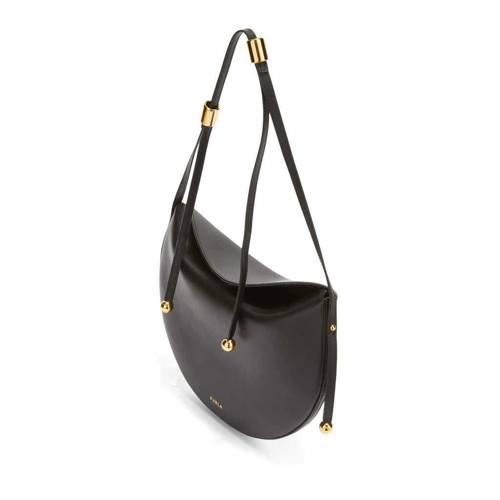 Седло в форме среднего размера сумка для плеча от линии Moonstone Furla. Стиль изготовлен из гладкой кожи сидни, и он поставляется с регулируемым плечевым ремнем, который позволяет носить его по разной длине.