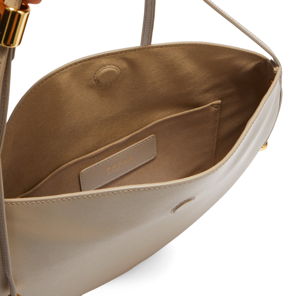 Седло в форме среднего размера сумка для плеча от линии Moonstone Furla. Стиль изготовлен из гладкой кожи сидни, и он поставляется с регулируемым плечевым ремнем, который позволяет носить его по разной длине.