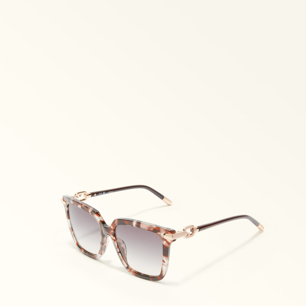Ацетатный фронт с кошками с металлической детализацией на стороне. Арк -логотип обруч. Впрыскиваемые нейлоновые храмы с круглым разрезом.